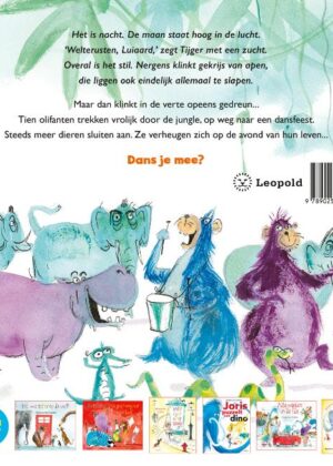 Tien olifanten trekken vrolijk door de jungle, op weg naar een dansfeest.