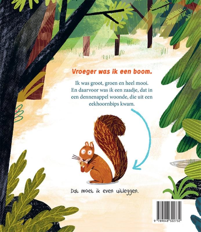 En daarvoor was ik een zaadje, dat in een dennenappel woonde, die uit een eekhoornbips kwam.
