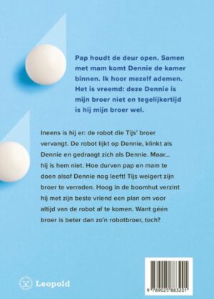 Ineens is hij er: de robot die Tijs’ broer vervangt. De robot lijkt op Dennie, klinkt als Dennie en gedraagt zich als Dennie. Maar… hij is hem niet. Hoe durven pap en mam te doen alsof Dennie nog leeft! Tijs weigert zijn broer te verraden. Hoog in de boomhut verzint hij met zijn beste vriend een plan om voor altijd van de robot af te komen. Want géén broer is beter dan zo’n robotbroer, toch?