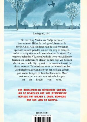 Ik heet Viktor Nikolajevitsj Danilov. Ik ben op 17 november 1928 geboren in Leningrad. Mijn ouders werken bij de Hermitage. Of beter gezegd, daar werkten ze totdat de oorlog uitbrak. Ik heb een tweelingzus die Nadja heet. Nadja en ik moesten weg uit Leningrad, maar we belandden per ongeluk in twee verschillende treinen. De mijne ging helemaal naar Tatarstan en van haar trein weet ik alleen dat hij in Mga is gestrand. Ik zit in een vrachtwagen die op de weg is geparkeerd. Buiten woedt een storm en het is ijskoud, zeker dertig graden onder nul. Het is een wonder dat ik nog leef.