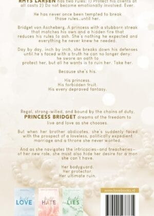 Stoic, broody, and arrogant, elite bodyguard Rhys Larsen has two rules: 1) Protect his clients at all costs 2) Do not become emotionally involved. Ever. He has never once been tempted to break those rules…until her. Bridget von Ascheberg. A princess with a stubborn streak that matches his own and a hidden fire that reduces his rules to ash. She’s nothing he expected and everything he never knew he needed. Day by day, inch by inch, she breaks down his defenses until he’s faced with a truth he can no longer deny: he swore an oath to protect her, but all he wants is to ruin her. Take her. Because she’s his. His princess. His forbidden fruit. His every depraved fantasy.