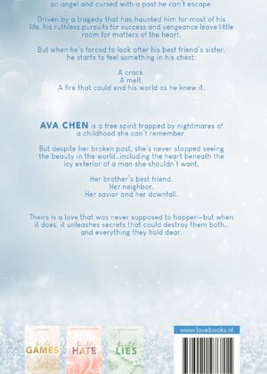 Ava Chen is a free spirit trapped by nightmares of a childhood she can’t remember. But despite her broken past, she’s never stopped seeing the beauty in the world…including the heart beneath the icy exterior of a man she shouldn’t want. Her brother’s best friend. Her neighbor. Her savior and her downfall.