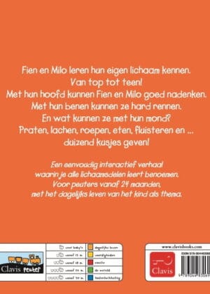 Fien en Milo leren hun eigen lichaam kennen. Van top tot teen! Met hun hoofd kunnen Fien en Milo goed nadenken. Met hun benen kunnen ze hard rennen. En wat kunnen ze met hun mond? Praten, lachen, roepen, eten, fluisteren en … duizend kusjes geven!