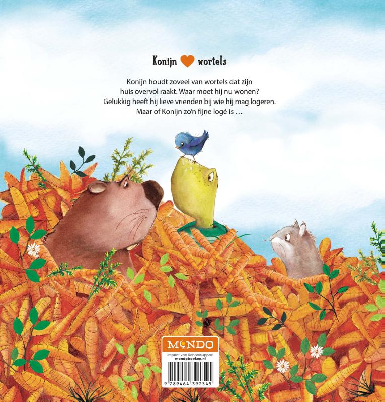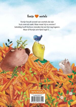 Konijn houdt zoveel van wortels dat zijn huis overvol raakt. Waar moet hij nu wonen? Gelukkig heeft hij lieve vrienden bij wie hij mag logeren. Maar of Konijn zo’n fijne logé is…