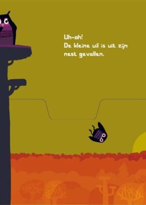 In ‘Mama kwijt’ dut een snoes van een uiltje weg en valt uit zijn nest – en ja, dan is hij zijn mama kwijt. Eekhoorn vindt hem en zal hem wel even helpen, maar dan moet Kleine Uil wel de juiste aanwijzingen geven… De 22 grote vertelplaten zijn perfect voor het voorlezen in de klas of op crèche. Terwijl de kinderen naar de grote prenten kijken, leest de voorlezer de tekst die op de achterkant is gedrukt. De vertelplaten passen in een standaard vertelkastje (niet meegeleverd) of kunnen worden vastgehouden door de verteller.