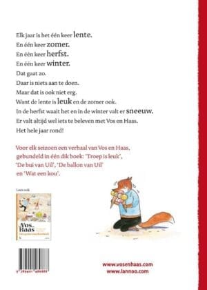 Voor elk seizoen een verhaal van Vos en Haas, gebundeld in één dik boek: Troep is leuk, De bui van Uil, De ballon van Uil en Wat een kou.