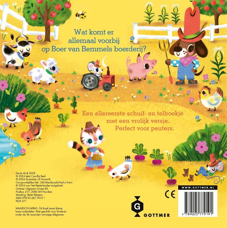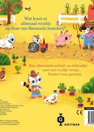 Kinderen kunnen met de knoppen langs de landweg schuiven om alle favoriete boerderijdieren te tellen en aan het einde van het boek naar bed te brengen. Dit unieke telboek, met charmante retro-illustraties en een vleugje nostalgie, is perfect om kinderen vertrouwd te maken met tellen en cijfers. Geschreven door bestsellerauteur Camilla Reid en prachtig geïllustreerd door Jill Howarth, is dit boek een geweldige toevoeging aan de boekenkast van elke jonge dierenliefhebber vanaf 18 maanden.