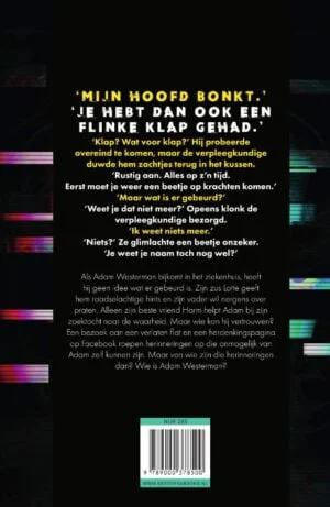 Als Adam Westerman bijkomt in het ziekenhuis, heeft hij geen idee wat er gebeurd is. Zijn zus Lotte geeft hem raadselachtige hints en zijn vader verzwijgt alles liever. Alleen zijn beste vriend Harm helpt Adam bij zijn zoektocht naar de waarheid. Maar wie kan hij vertrouwen? Een bezoek aan een verlaten flat en een herdenkingspagina op Facebook roepen herinneringen op die Adam onmogelijk kan hebben. Maar van wie zijn die herinneringen dan? En wie is Adam Westerman?