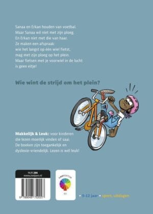Lezen saai? Niet met dit boek, speciaal geschreven voor sportliefhebbers tussen de 9 en 12 jaar. Er is maar één plein en er zijn twee ploegen die er willen voetballen, maar niet met elkaar. Wat doe je dan? Sanaa en Erkan weten het wel in dit verhaal van Mandy Pijl. Jan Dirk Barreveld tekende er de stoere illustraties bij en samen zorgen ze ervoor dat lezen wel leuk is. Dit boek op AVI E3-niveau is een dikke aanrader voor kinderen met dyslexie of een leesachterstand.