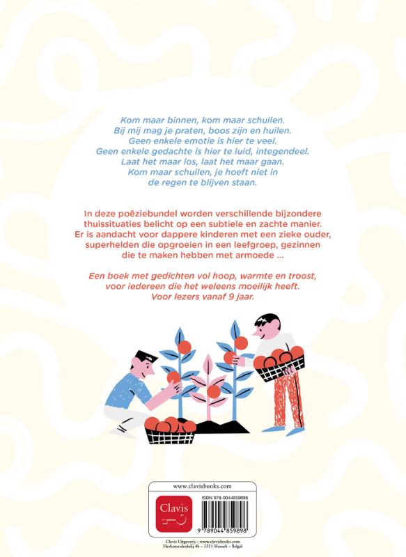 Een boek met gedichten vol hoop, warmte en troost, voor iedereen die het weleens moeilijk heeft. Voor lezers vanaf 9 jaar.
