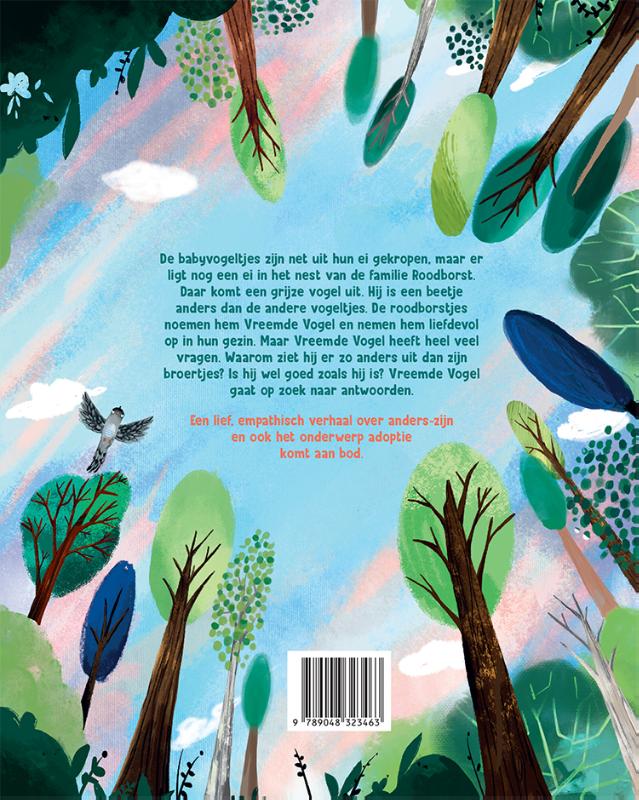 De babyvogeltjes zijn net uit hun ei gekropen, maar er ligt nog een ei in het nest van de familie Roodborst. Daar komt een grijze vogel uit. Hij is een beetje anders dan de andere vogeltjes. De roodborstjes noemen hem Vreemde Vogel en nemen hem liefdevol op in hun gezin. Maar Vreemde Vogel heeft heel veel vragen. Waarom ziet hij er zo anders uit dan zijn broertjes? Is hij wel goed zoals hij is? Vreemde Vogel gaat op zoek naar antwoorden.