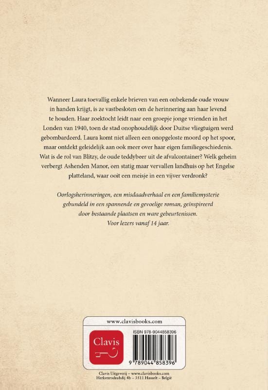 Wanneer Laura toevallig enkele brieven van een onbekende oude vrouw in handen krijgt, is ze vastbesloten om de herinnering aan haar levend te houden. Haar zoektocht leidt naar een groepje jonge vrienden in het Londen van 1940, toen de stad onophoudelijk door Duitse vliegtuigen werd gebombardeerd. Laura komt niet alleen een onopgeloste moord op het spoor, maar ontdekt geleidelijk aan ook meer over haar eigen familiegeschiedenis. Wat is de rol van Blitzy, de oude teddybeer uit de afvalcontainer? Welk geheim verbergt Ashenden Manor, een statig maar vervallen landhuis op het Engelse platteland, waar ooit een meisje in een vijver verdronk?