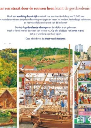 Op elke spread is dezelfde straat te bewonderen, maar steeds op een ander moment in een periode van meer dan 12.000 jaar. Begin in de allereerste straat in een nederzetting van jagers en vissers en volg diezelfde straat tot in de toekomst om te zien hoe onze wereld is veranderd en hoe die verandering onvermoeibaar door blijft gaan. Superinteressant voor kinderen vanaf 7 jaar.