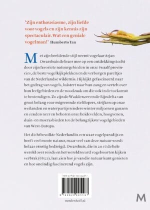 Met zijn beeldende stijl neemt vogelaar Arjan Dwarshuis de lezer mee op een ontdekkingstocht door zijn favoriete natuurgebieden in onze twaalf provincies, de beste vogelkijkplekken en de verborgen pareltjes van de Nederlandse wildernis. Hij kijkt gefascineerd naar het gedrag van vogels, luistert naar hun zang en vertelt over hun leefgebieden en de noodzaak om die ook in de toekomst te bestendigen. Zo zijn de Waddenzee en de Rijndelta van groot belang voor migrerende steltlopers, strijken op onze weilanden en waterpartijen iedere winter miljoenen ganzen en eenden neer en behoren onze heidevelden, hoogvenen, duin- en moerasgebieden tot de belangrijkste vogelgebieden van West-Europa.